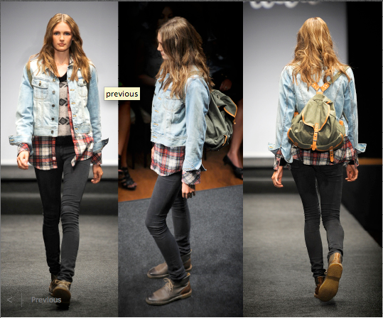 denim jacket: TNA, flannel plaid shirt: TNA, mohair sweater: TNA, canvas backpack: TNA
